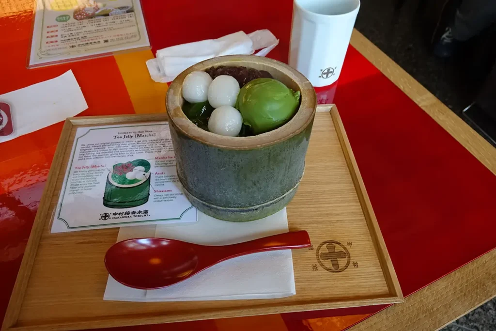 • Namacha Jelly (生茶ゼリイ): “Fresh Tea Jelly,” Nakamura Tokichi’s signature dessert, beloved for its intense, pure matcha flavor.